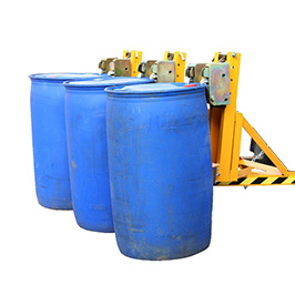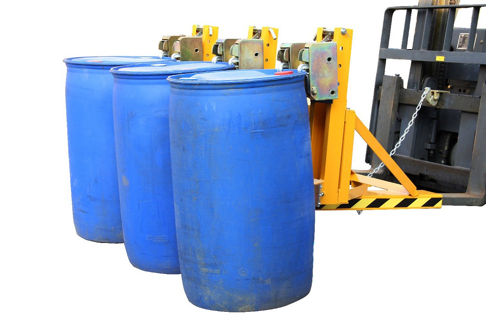 1. 纯机械结构设计的重型双桶夹具可与叉车方便地配合,仅依靠叉车的动作,不需要其它动力,可自动一次搬运3个桶。